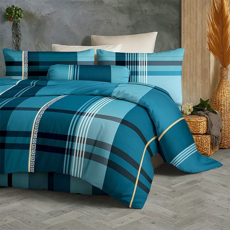 Ga trải giường vải thun với họa tiết sọc xanh đen mang đến một vẻ đẹp hiện đại và sang trọng cho không gian phòng ngủ. Sự kết hợp màu sắc độc đáo giúp tạo điểm nhấn tươi mới, dễ chịu, cùng với chất liệu vải thun mềm mại, thoáng khí, tạo cảm giác thoải mái khi sử dụng.