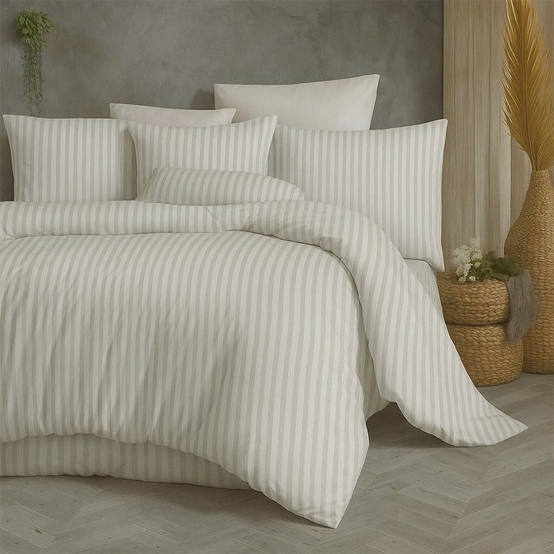 Ga trải giường vải thun Ý trắng sọc thuần không chỉ mang đến vẻ đẹp hiện đại, mà còn tạo cảm giác thoải mái và dễ chịu cho người sử dụng. Thiết kế tinh tế cùng kết cấu mềm mại giúp sản phẩm này nổi bật trong không gian phòng ngủ.