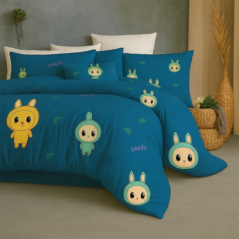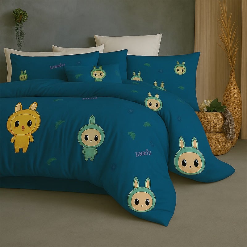 Ga trải giường vải thun màu xanh dương với họa tiết hoạt hình mang lại vẻ tươi vui cho không gian phòng ngủ của bạn. Với sự kết hợp giữa chất liệu mềm mại và thiết kế ngộ nghĩnh, sản phẩm này sẽ làm hài lòng cả trẻ em và người lớn.